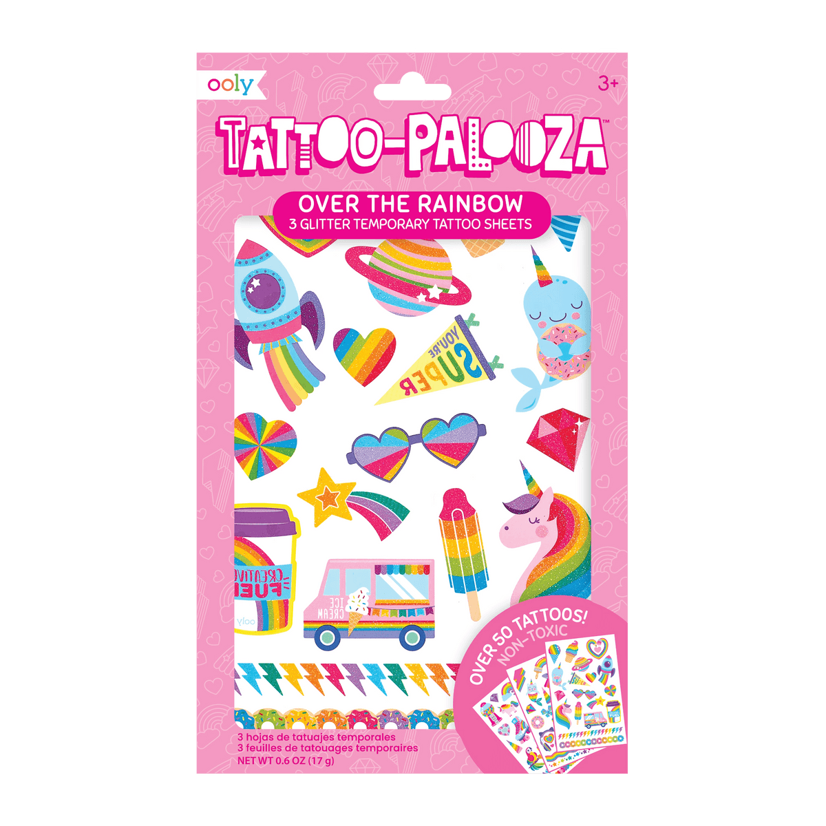 Ooly Tattoo Palooza: Over the Rainbow Temporary Glitter Tattoos - 3 Sheets