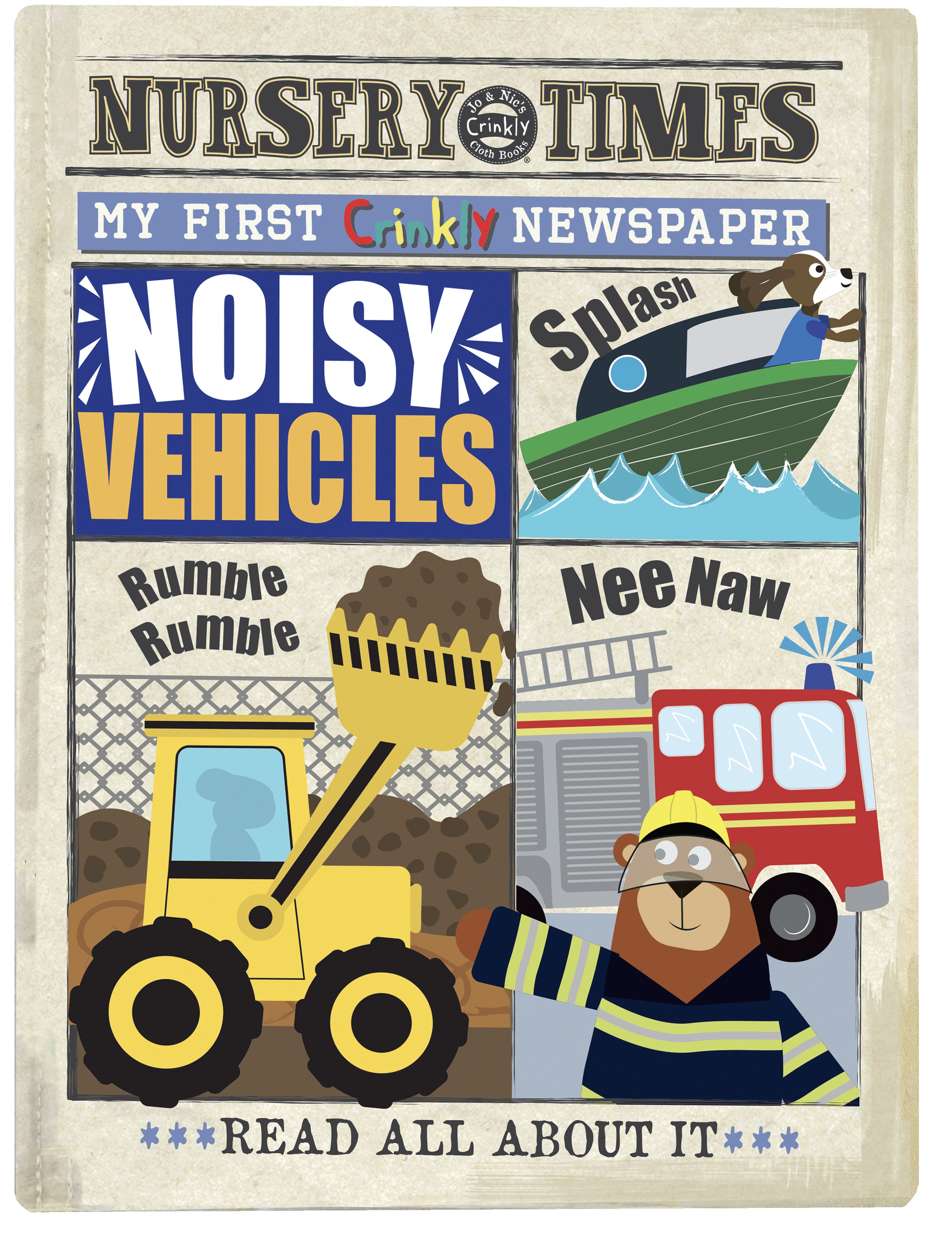 Read All About It! This brilliant sensory cloth book is designed to look, feel, and sound like a little crinkly newspaper—perfect for engaging little learners with the noisy vehicles they can find on the road, sea, rail, and in the air. From the roar of a fire engine to the chug of a train, this book brings the world of transport to life through bright illustrations and fun, simple text.