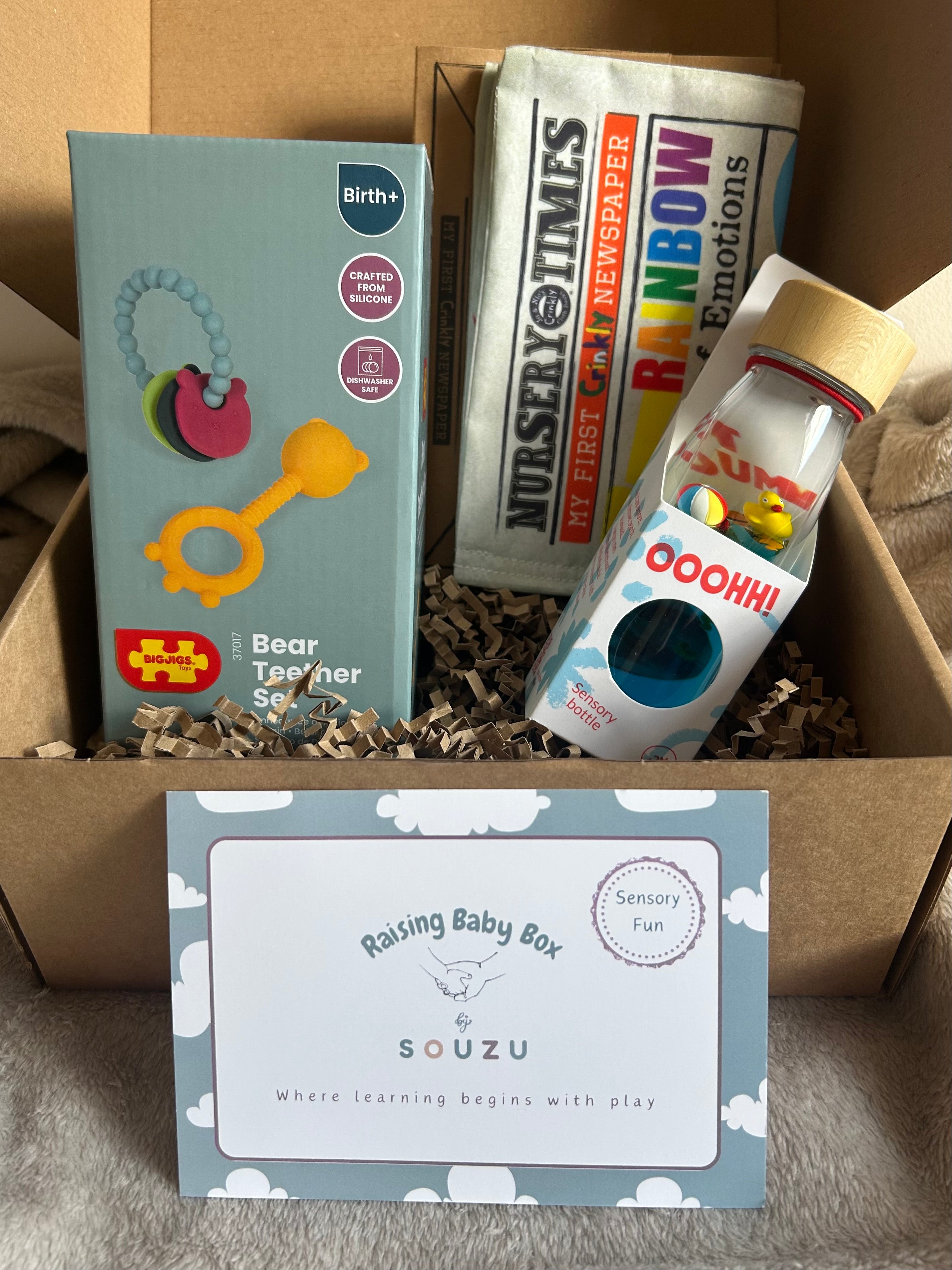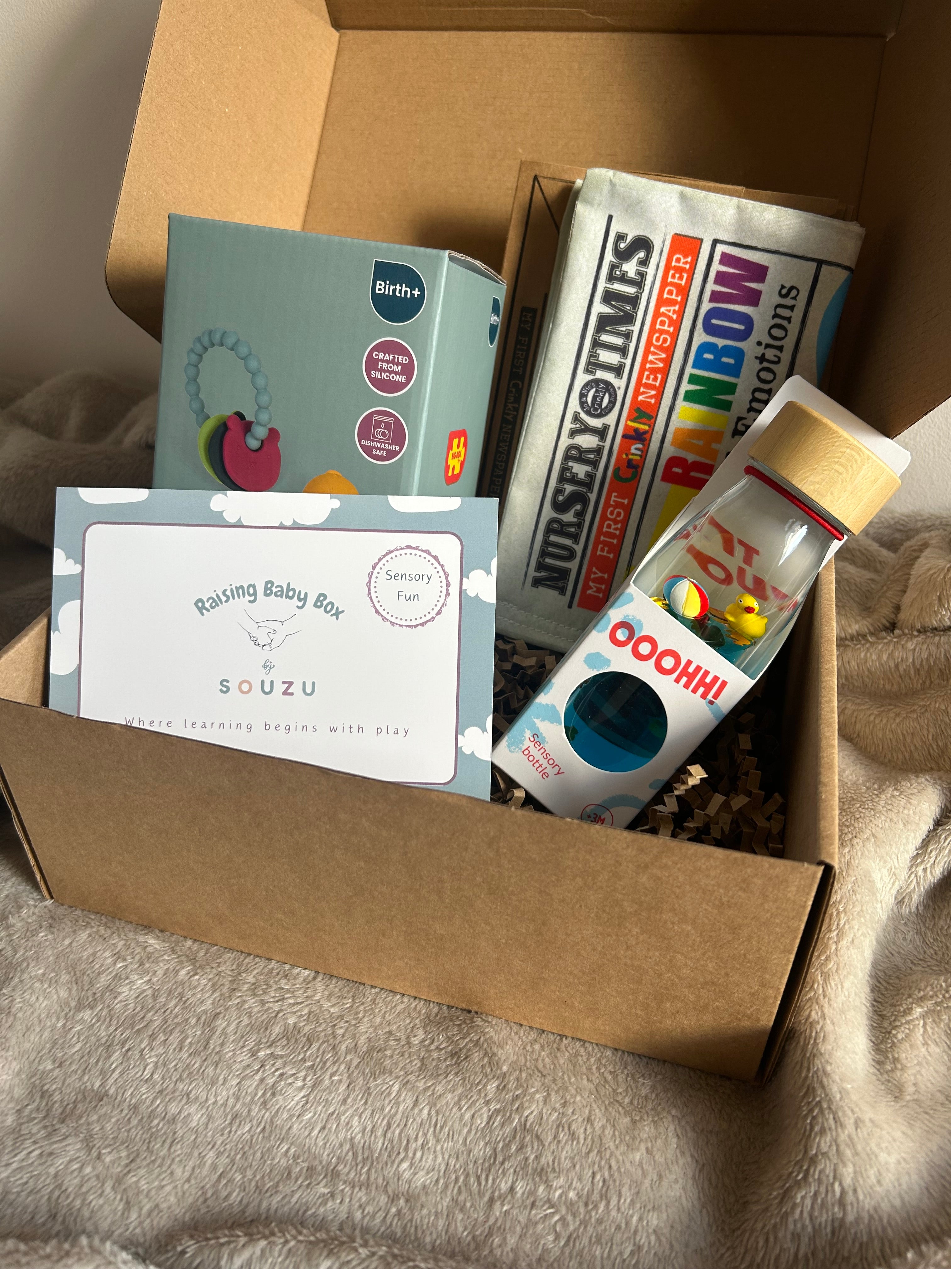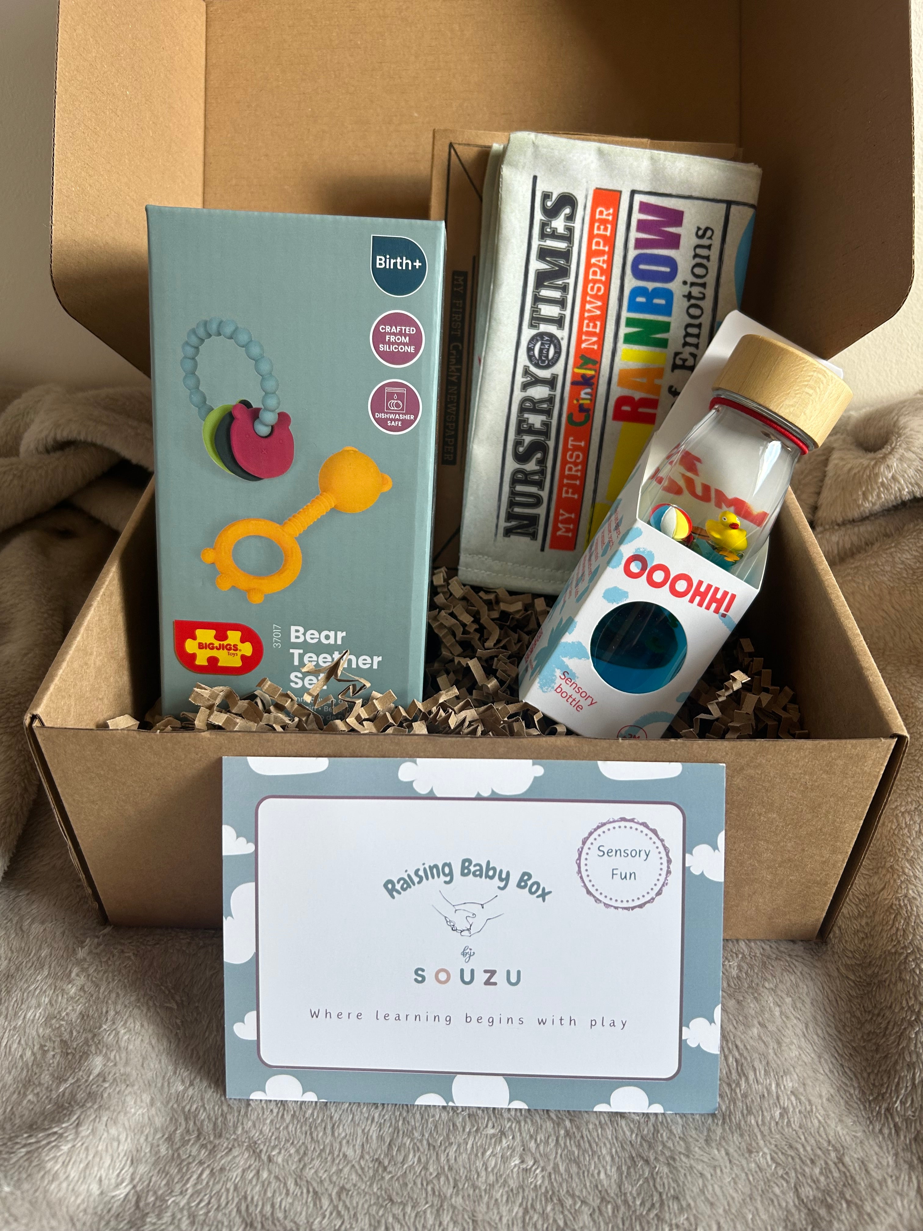Our Raising Baby Boxes are Play-based gifts expertly curated to help nurture a child’s development.