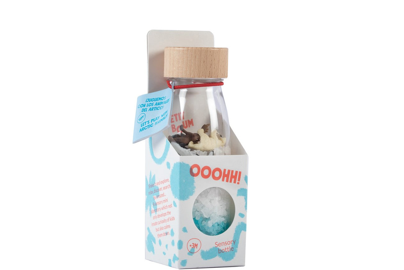 Discover the magic of the frozen north with the Petit Boum Spy Bottle – Arctic! Designed as a miniature world inside a bottle, this captivating sensory toy invites little ones to explore an enchanting Arctic landscape filled with animals and icy treasures. Each shake, tilt, or roll reveals new details to observe and enjoy. From floating snow-like particles to hidden creatures waiting to be found.