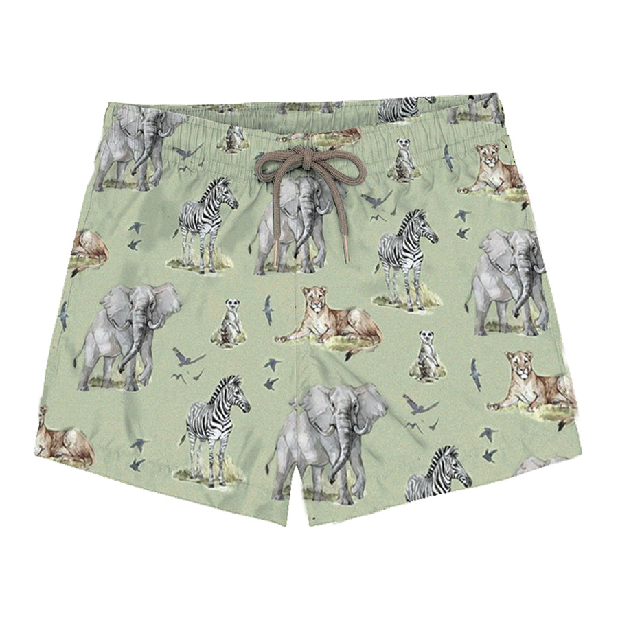 Kalahari Slipfree® UPF 50+ swim shorts is adorned with the majestic wildlife of the African savannah against a soft green background. Evoking the allure of safari adventures, these swim shorts feature elephants, lions, and zebras in a captivating design that celebrates the beauty of nature. With matching UPF 50+ Slipfree® non-slip swim shoes your little one will be ready for adventures in style.