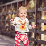 Celebrate the magic of the season with our Festive Rudolph Sweater — a cosy classic that pairs perfectly with any of our Christmas leggings! Made from soft grey marl fabric, this jumper features an appliquéd and embroidered fleece reindeer motif for an irresistibly festive touch. It’s warm, playful, and even Father Christmas approved for your little elf!