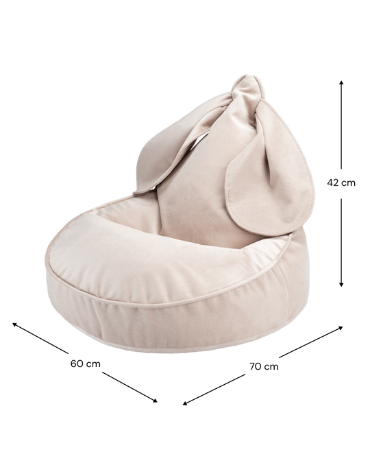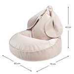 Meet Wigiwama's signature Bunny Beanbag, a luxurious and functional accessory perfect for any child’s room. Designed with a soft-touch velvet fabric and playful bunny ears, this beanbag invites children to relax and unwind in comfort and style, making it ideal for reading, lounging, or quiet play.