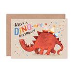 Dinosaur greeting card with a fun and colourful illustration. Can be bought as a single birthday card or in a multipack of six different dino designs.