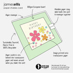 The image is printed on translucent paper, showing coloured confetti dots behind. The confetti moves around when you shake the card.