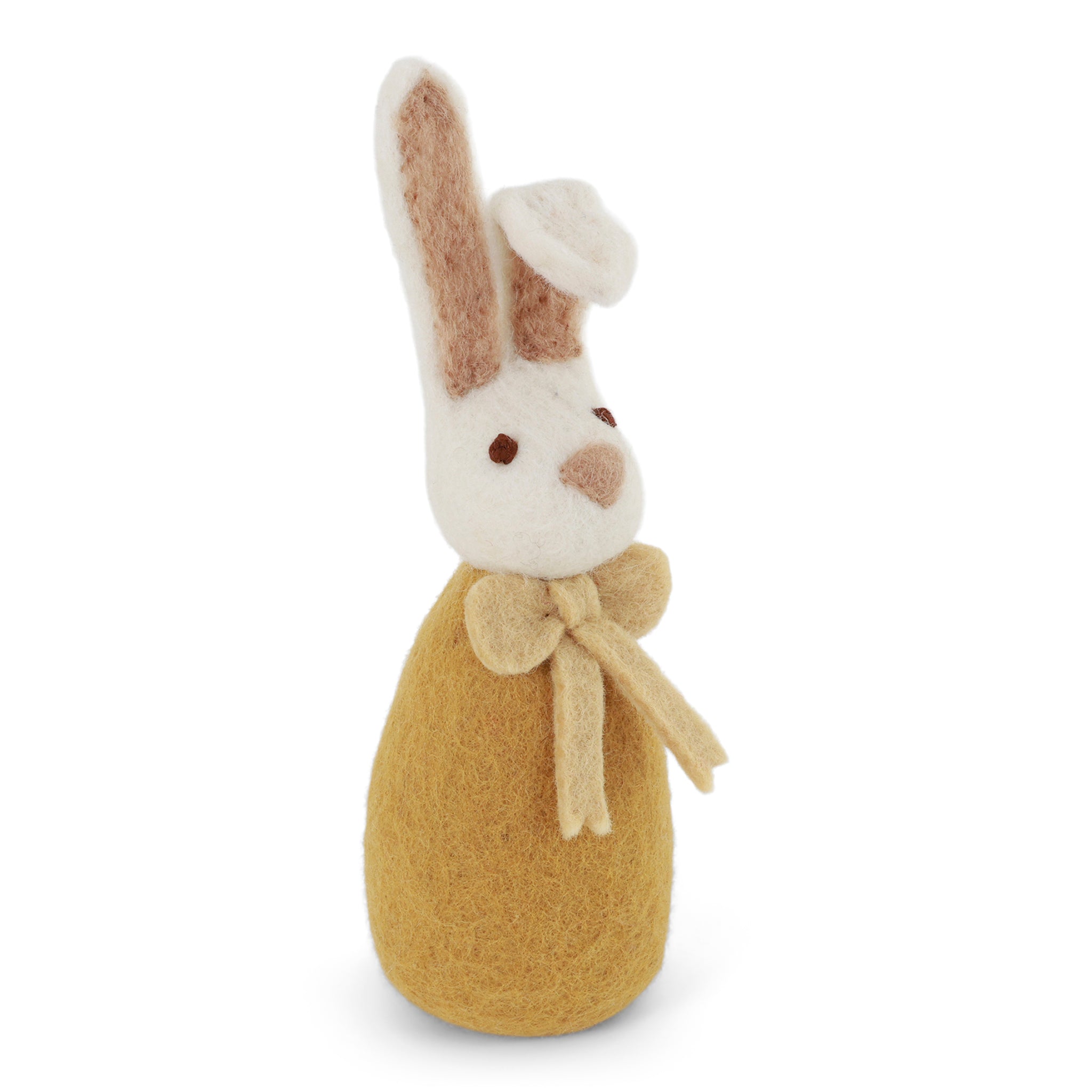 The rich ochre hue and delicate bow make this felted bunny a standout piece for Easter decorations, nursery styling, or seasonal home décor. Whether placed on a festive table, bookshelf, or windowsill, this eco-friendly wool bunny brings a cosy and natural aesthetic to any space.