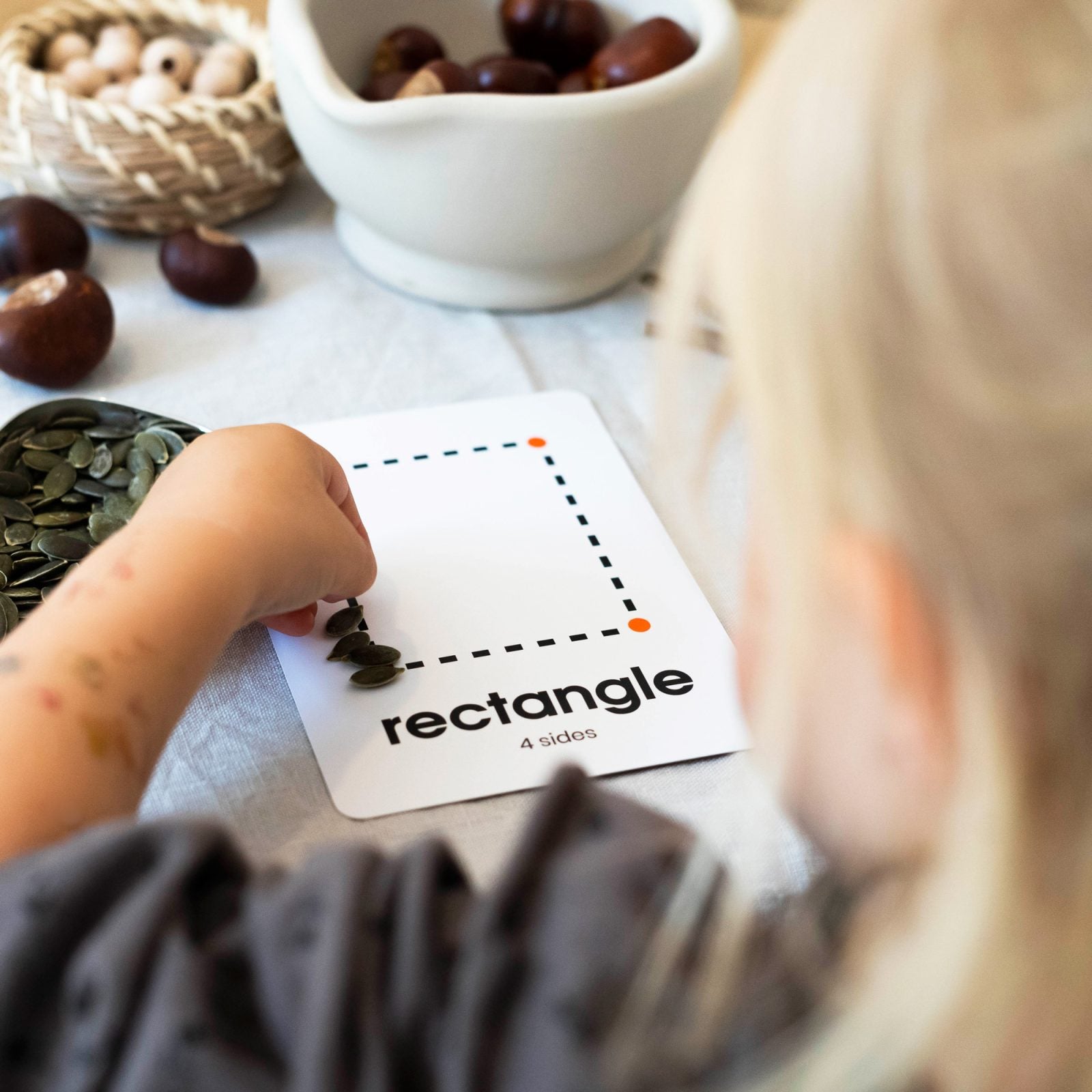The world is full of fascinating shapes, and our wipeable Shapes Flashcards are designed to help children explore, recognise, and draw them with confidence. With 24 double-sided cards, this set introduces both 2D and 3D shapes in a clear, Montessori-inspired format. Children can trace shapes with simple dot-to-dot guides, helping them understand points, sides, and edges while developing pre-writing skills. Fun game ideas included on the reference card make learning interactive and engaging, encouraging children to spot shapes in everyday objects both indoors and outdoors. Parents love that these cards grow with their child, supporting shape recognition from preschool through to Key Stage 1 and beyond.