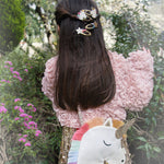 Twinkle, sparkle, and shine! Our Rainbow Star Hair Clips bring a sprinkle of magic to your little one’s hair. Each set features two glittery gold stars with rainbow ribbon tails that dance and shimmer with every move. Securely attached to gold ribbon-wrapped snap clips, these stars turn everyday hairstyles into a mini rainbow adventure!