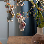 Bring a touch of whimsy and joy to your home with our White Bunny Boy with Blue Pants and Balloons. Crafted with love from 100% New Zealand wool, this adorable bunny is dressed in charming blue pants, ready to brighten up any Easter celebration or springtime décor. With its playful balloons in tow, this bunny embodies the spirit of adventure and joy, making it the perfect addition to an Easter egg hunt or as a gift for little ones.