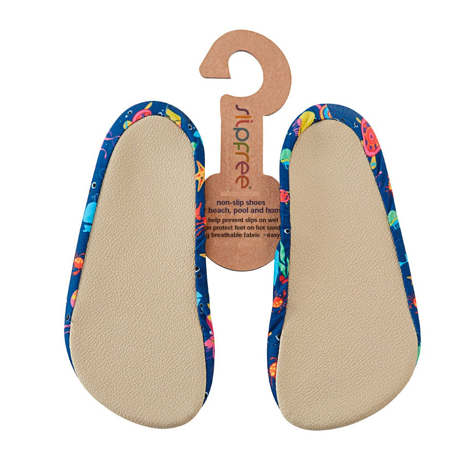 Slipfree firm grip soles prevent slips on wet and dry floors and the high tech fabric helps prevent feet on hot sands and rough surfaces