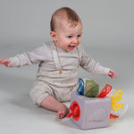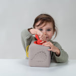 The Pop-up Tissue Box is a beautifully designed sensory toy that transforms everyday play into a rich developmental experience. Inspired by Montessori principles, this soft silicone tissue box includes 10 colourful fabric tissues—8 shimmering organza and 2 ultra-soft peach textures—inviting babies to explore, grasp, and discover through tactile play.