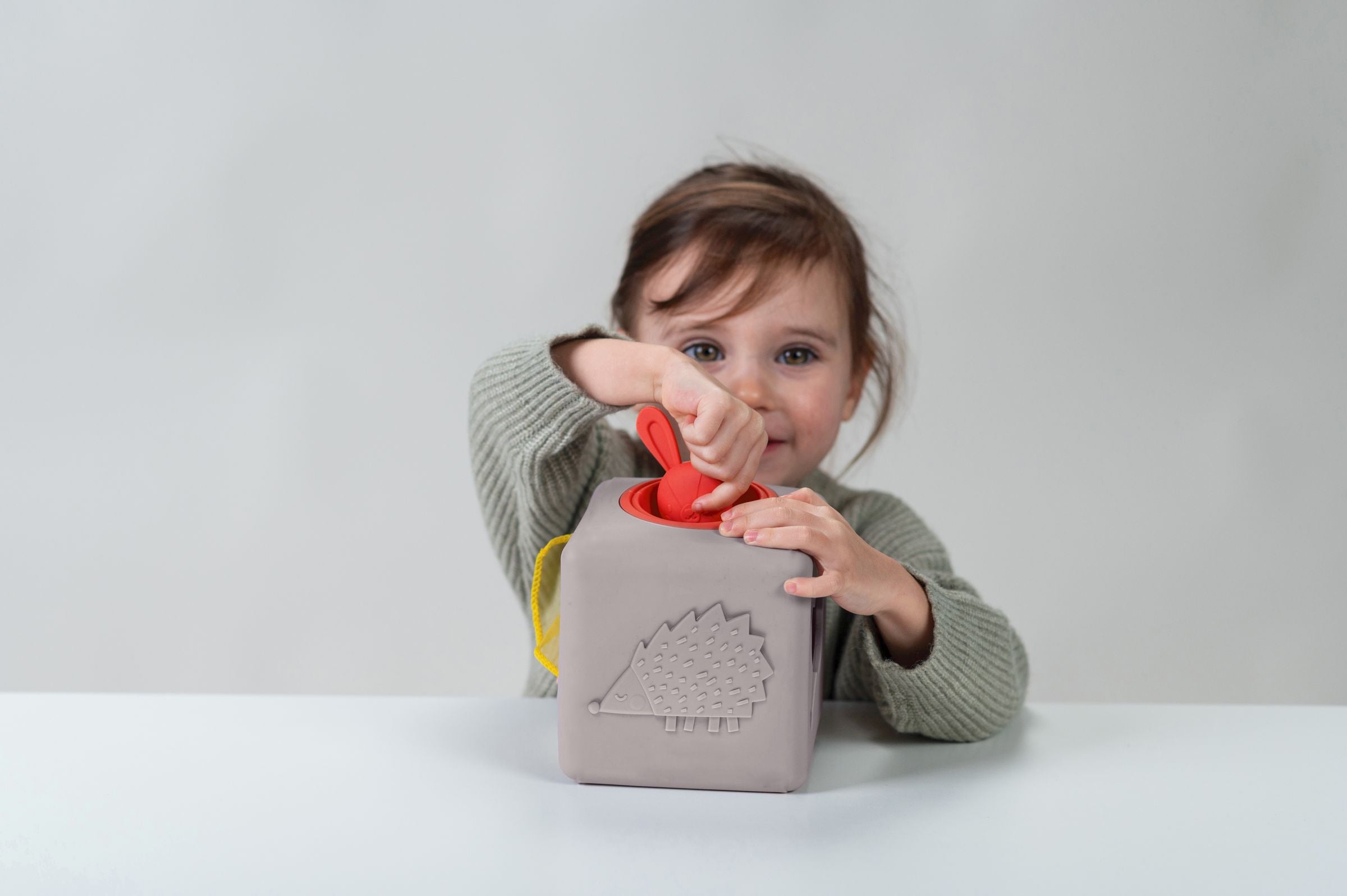 Each side of the box offers a new sensory adventure: a peek-a-boo bunny sparks curiosity, a textured hedgehog encourages touch exploration, and a pull-through grid supports the development of fine motor skills and hand-eye coordination. As babies pull, push, and tidy up the tissues, they engage in purposeful play that strengthens sensory-motor integration and problem-solving.