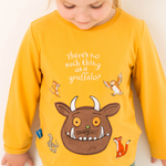 Brighten up your child’s wardrobe with this cute and colourful top from our brand-new Gruffalo collection. In a cheerful mustard colour, this top features a fluffy, friendly Gruffalo face along with his woodland friends, creating a playful and endearing design that fans of the classic story will love.