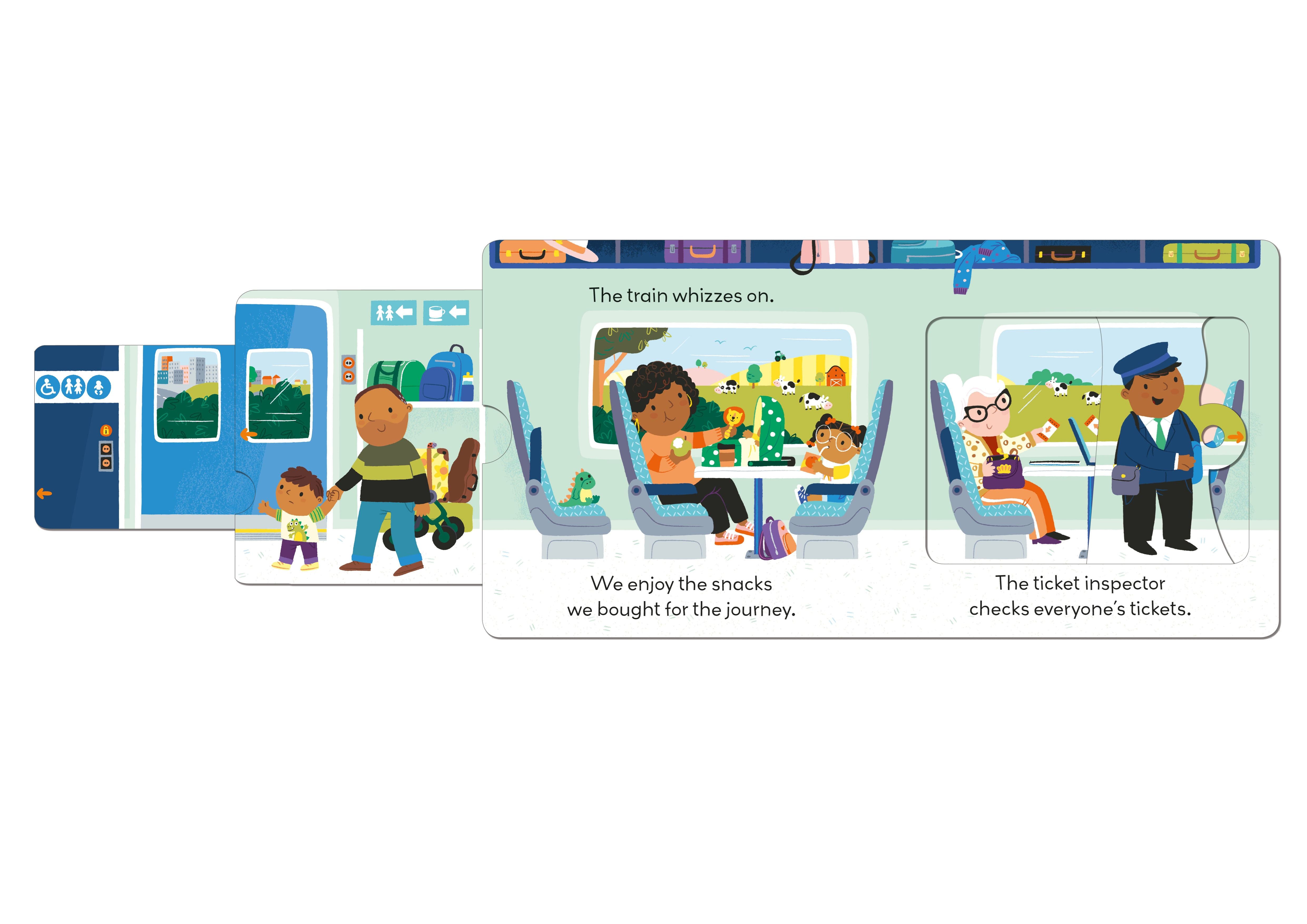 Each spread features a novelty slide, push, or pull mechanism, keeping children entertained while they explore the world of rail travel. All Aboard the Railway helps develop fine motor skills, encourages interaction, and offers an immersive experience as children follow the story of a railway trip.