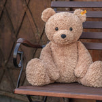 Standing at an impressive 55 cm tall, Jimmy Teddy Bear is a timeless companion designed to offer warmth, comfort, and endless cuddles. Made from luxuriously soft, untamed plush in a classic light brown hue, Jimmy features inquisitive embroidered eyes, a sturdy nose, and signature cuddly ears – complete with Steiff’s iconic stainless steel “Button in Ear” for authenticity and heritage. His generous size and irresistibly huggable texture make him the perfect “big brother” in the Jimmy series and an ideal companion for storytime, bedtime, or everyday adventures.
