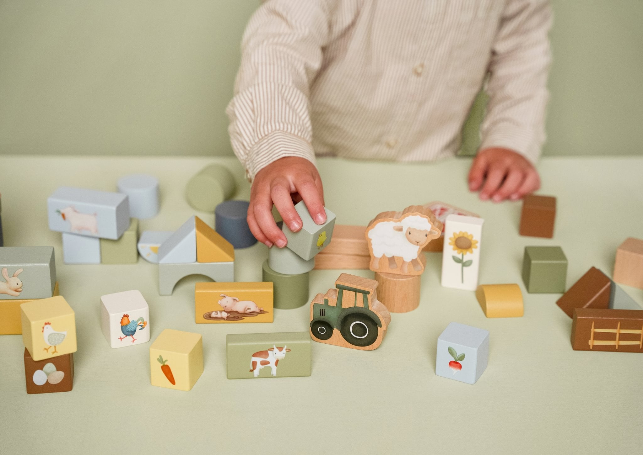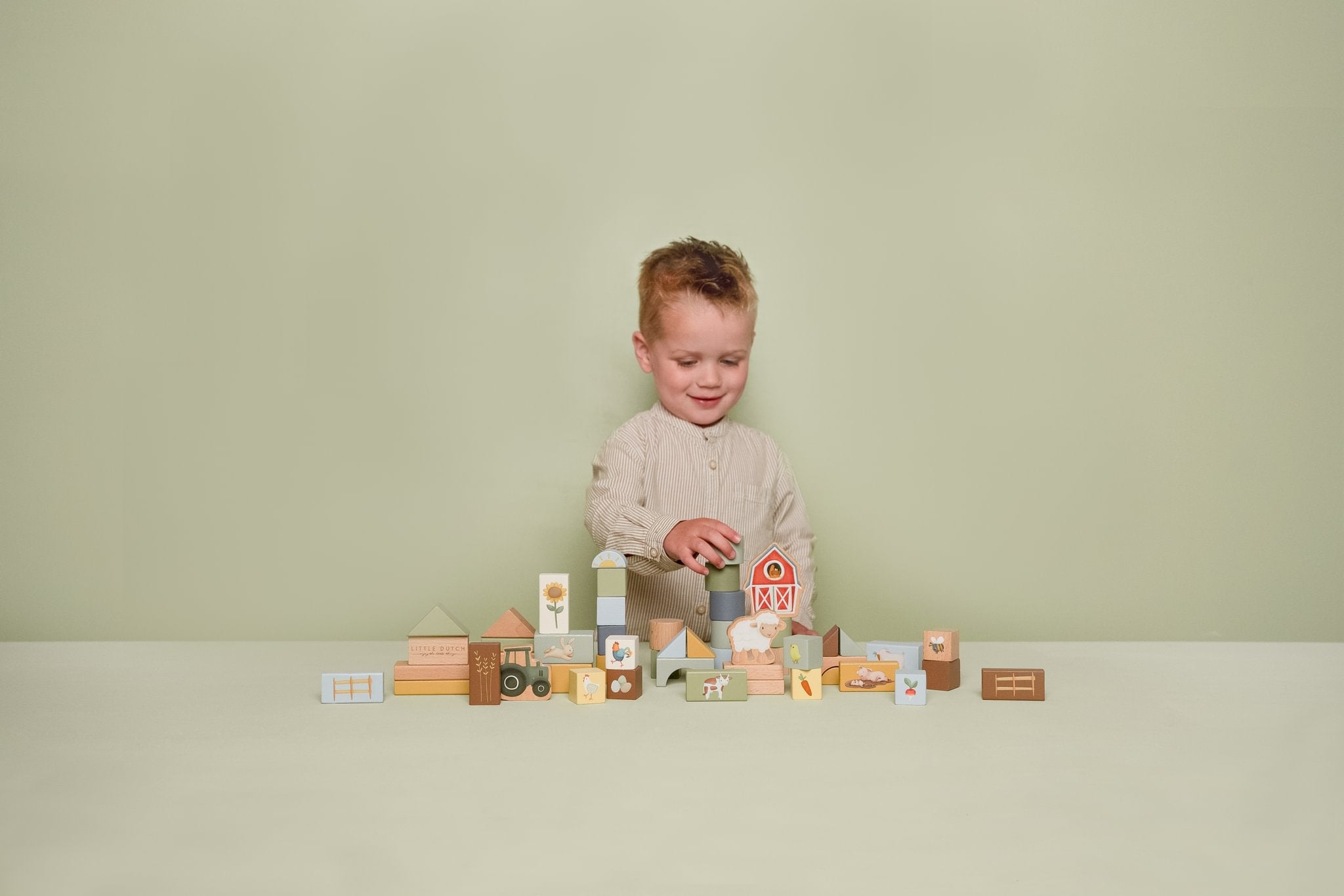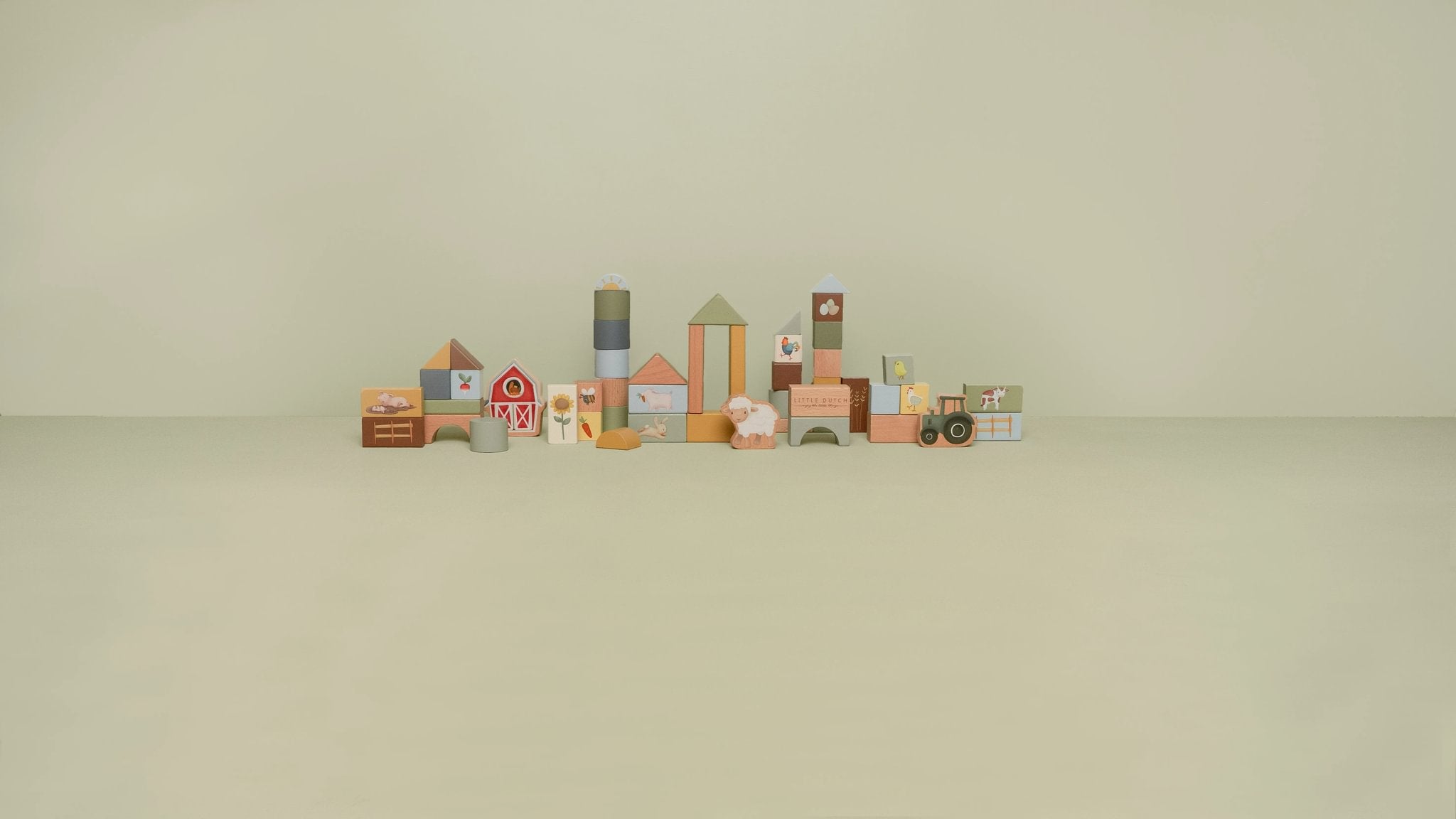 Inspire hours of creative play with the Little Farm Building Blocks Barrel, a charming 50-piece wooden block set designed for little builders. Featuring delightful prints from the Little Farm collection, these FSC®-certified wooden blocks encourage children to construct their very own farmyard scenes — complete with barns, animals, and fields. Once playtime is over, all the pieces pack neatly back into the handy storage barrel, making tidy-up quick and easy. A timeless toy that combines creativity, coordination, and imagination in every build.