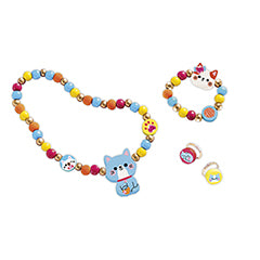 A charming jewellery‑making kit with cat‑themed wooden beads — perfect for young creators aged 4+.