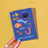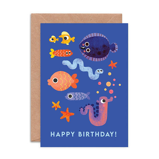 Make someone smile on their special day with this fun and colourful birthday card featuring a cast of silly fish characters – perfect for kids or the young at heart!