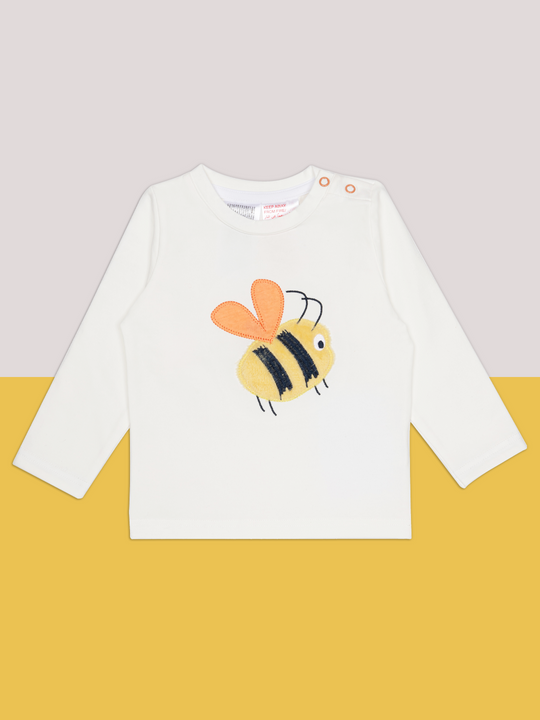 This off-white top features an adorable Bee print on the front, adding a touch of whimsy and fun to this cute piece of clothing.