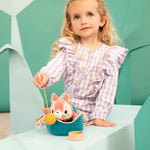 Supports fine motor skills as children grasp, carry and place Jeanne in her basket
