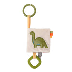 A soft dinosaur-themed baby book with sounds and a teether for sensory fun and soothing play.