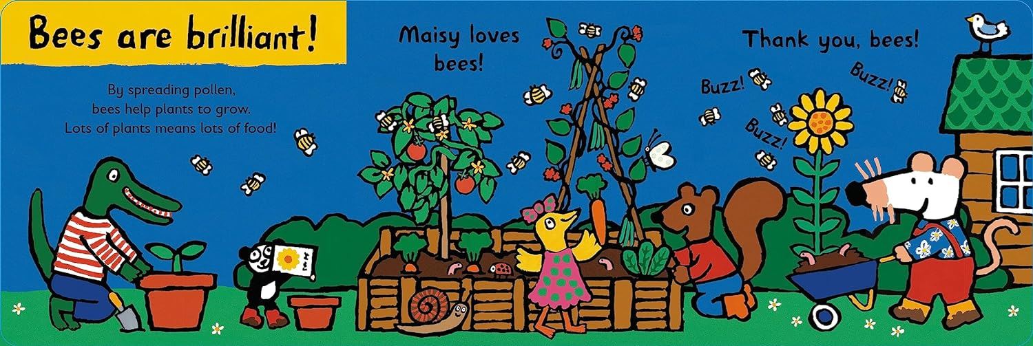 Join Maisy as she explores the buzzing world of bees in her garden! In this charming board book, little ones will discover why bees are so important for our planet. From learning what bees do all day to where they live, each page encourages curiosity and observation about nature. Open out the final scene to see Maisy and the busy bees in action, bringing the story to life in an engaging, interactive way.
