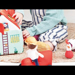 This charming playset is fully portable, with a handy carry handle on the roof, and the entire set is padded with recycled polyester for softness and safety. When playtime is over, it can be popped in the washing machine for easy cleaning.