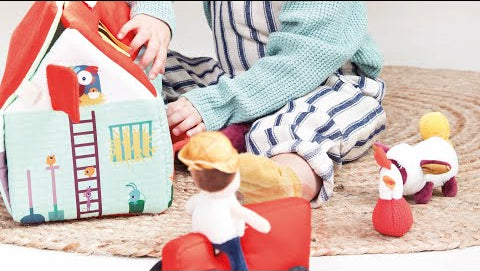 Entertain and delight little ones with the Barnaby Farm — a soft, fabric farm set full of friendly animals and surprises! Inside, children will meet Simon the pig, Rosalie the cow, Ignace the donkey, Yvon the sheep, Paulette the hen, and Gaspard the duck.