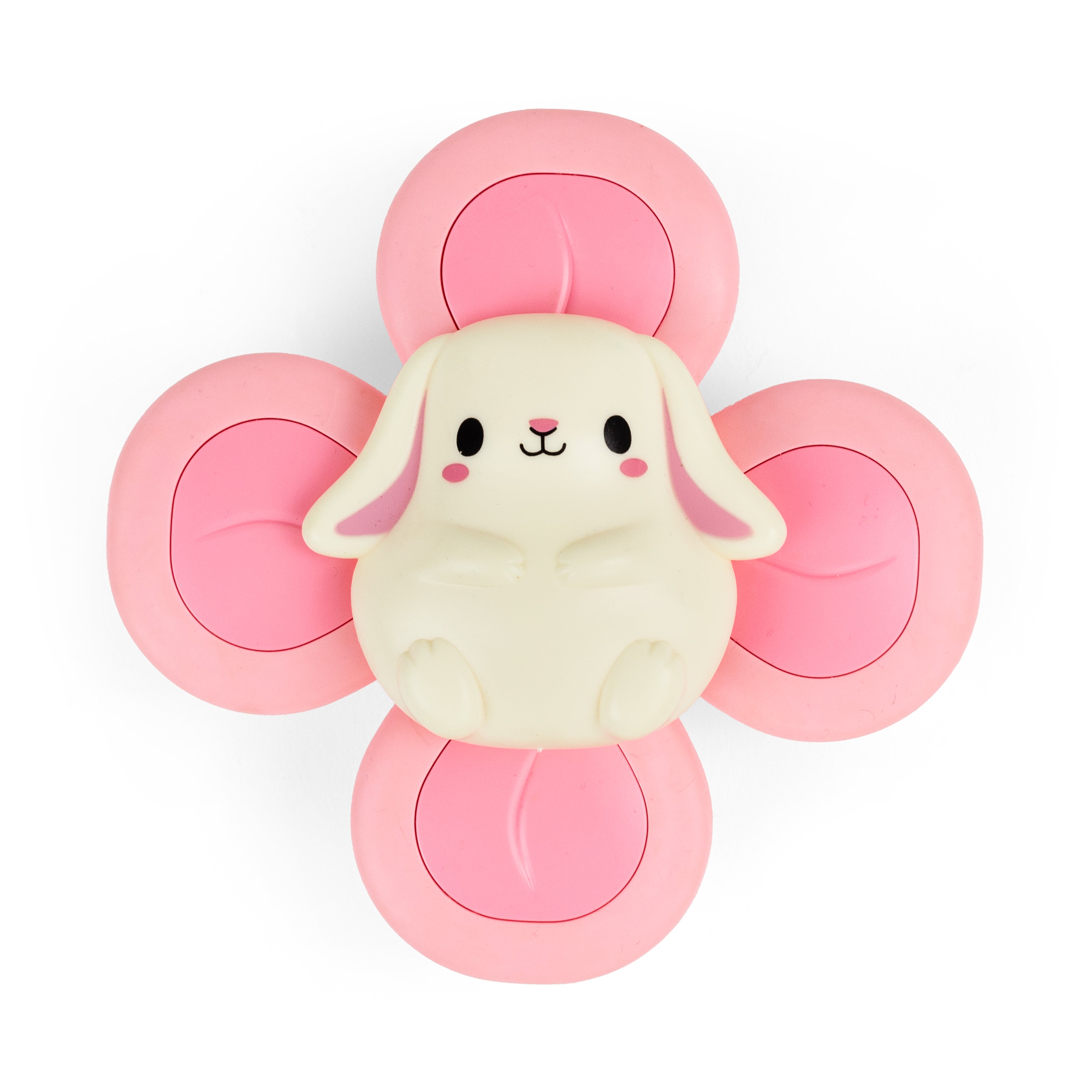 The Sensory Spinner - Bunny from Tiger Tribe is a delightful pastel pink playtime companion designed to captivate and engage little ones. With four paddles, a cute bunny character in the centre, and a strong suction cup, this spinner easily sticks to smooth surfaces like bathtubs, high chairs, and car windows, making it perfect for at-home or on-the-go entertainment.