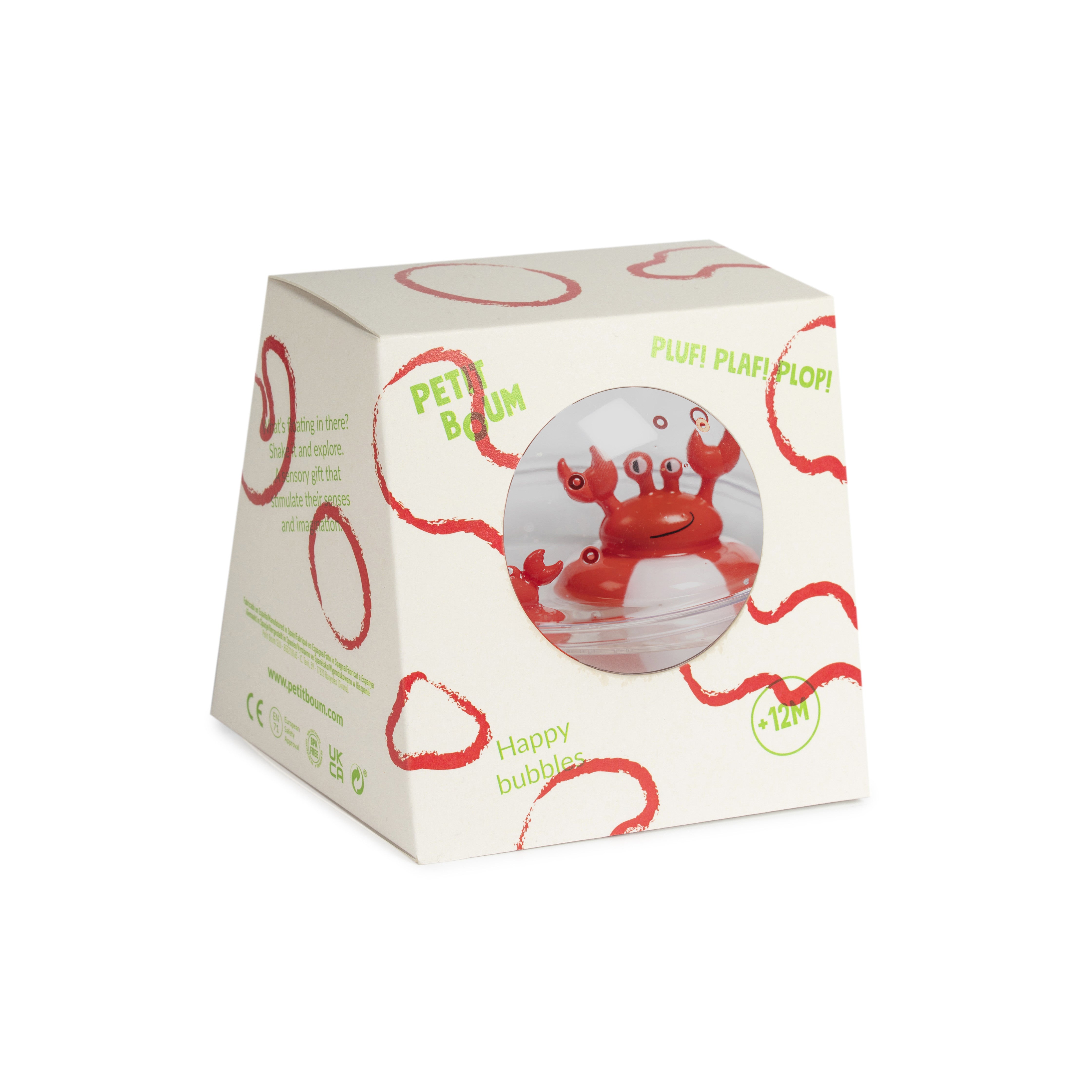 The Petit Boum Happy Bubbles – Crabs invite little ones into a tiny floating world of colour, movement and curiosity. Inside each clear bubble, cheerful crabs drift and dance through the water, creating a soothing sensory landscape that captures attention and sparks delight. Designed for bath time, pool play or simple quiet moments, these buoyant sensory balls encourage little hands to explore, grasp and follow the gentle motion within.