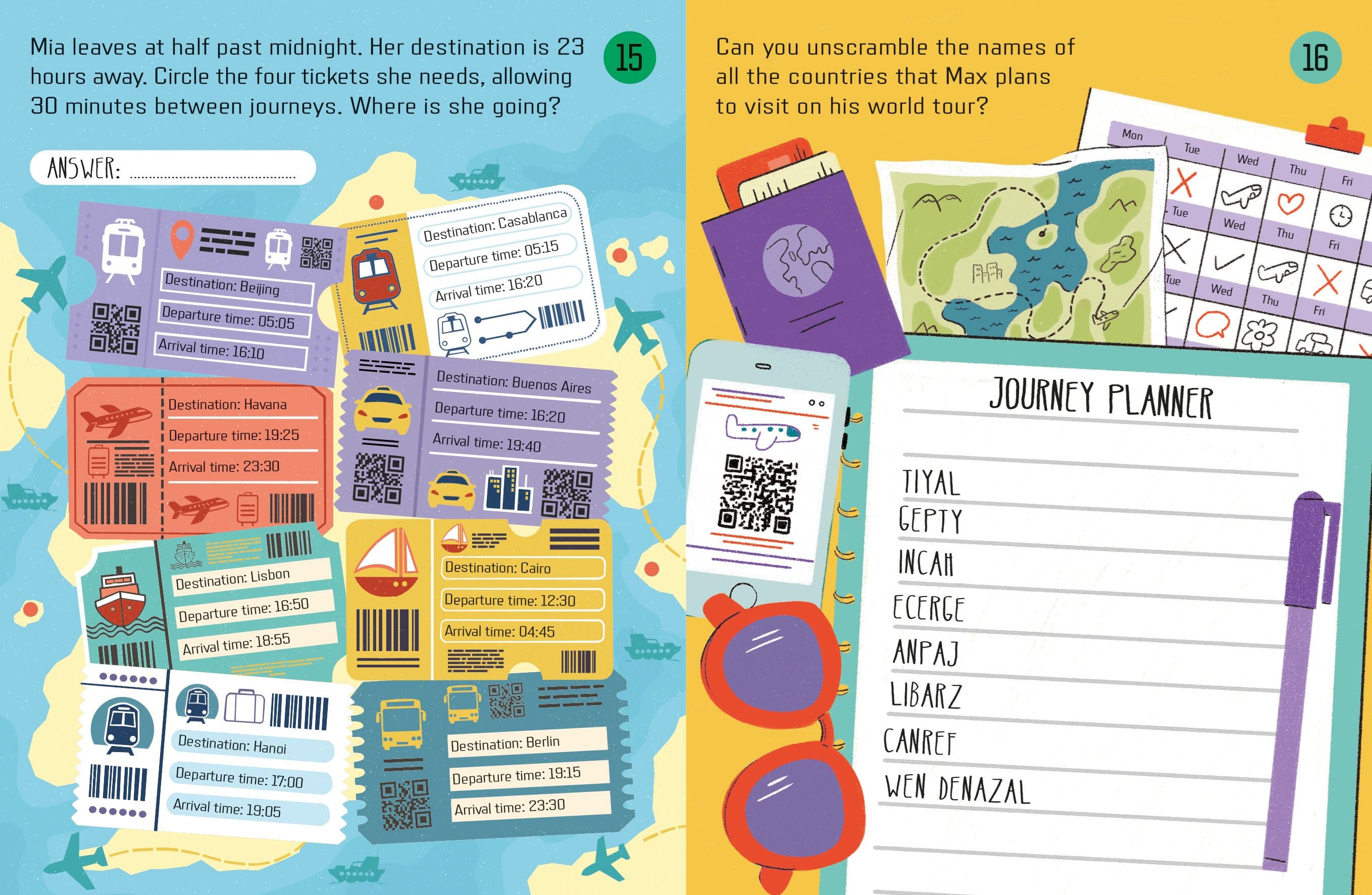 From mazes and spot-the-differences to logic and number games, this mini book is designed to make any journey fly by, whether by car, train, or plane.