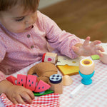 Includes a selection of wooden breakfast foods and accessories