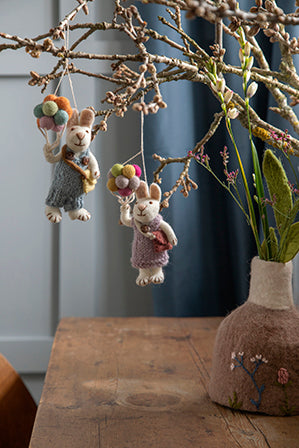 Celebrate the season of joy with our White Bunny Girl with Lavender Dress and Balloons. This enchanting bunny is dressed in a delicate lavender dress, complete with a soft, sweet balloon in hand – the perfect combination of spring charm and festive spirit. Made from 100% New Zealand wool, this handcrafted beauty will add a touch of whimsy and warmth to any Easter celebration or spring décor.