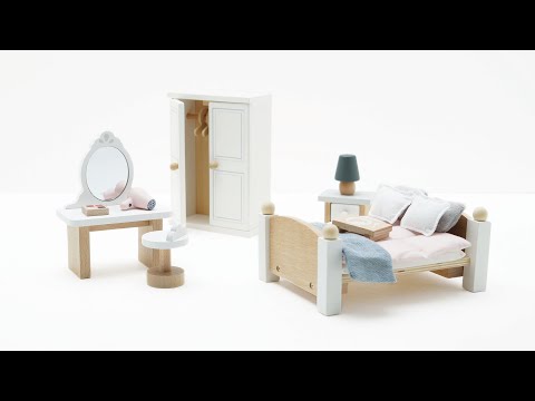 With its classic design in soft, neutral tones, this set adds a touch of timeless style to any dolls house. Parents love its thoughtful details – from the comfy double bed with quilt, pillows, and stylish throw, to the wooden tray for breakfast in bed – all designed to spark creativity and support early development.